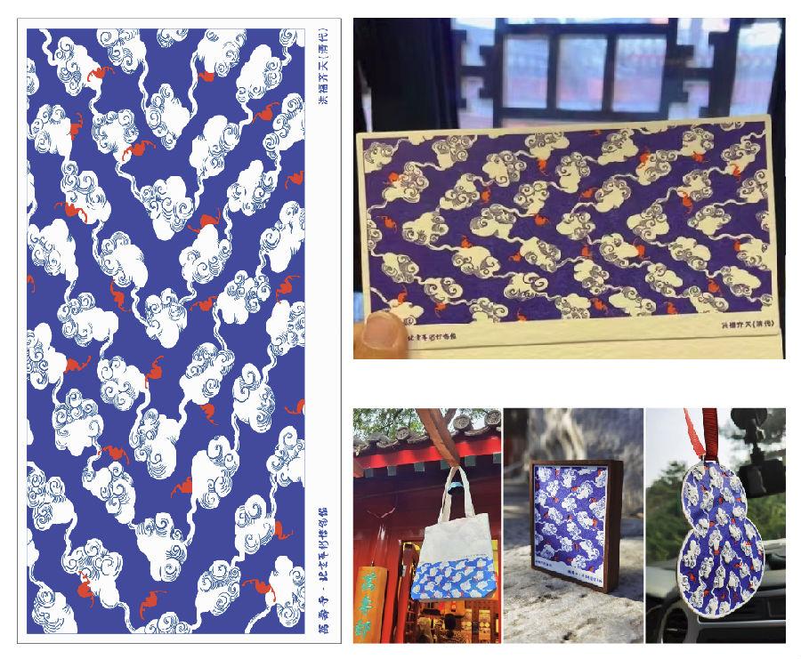作品提取博物馆大殿顶部的福字天花彩绘,设计冰箱贴、车载香薰、手机支架、挂画、书签等产品,将纹样的不同造型以独特的创意方式或形式加载于产品之中,与其融合为一体,成为特定文化内容主题的文创产品。当游客看到优质的文创产品时,会受到文化的视觉冲击力,感受到博物馆的文化气息。使其具有设计价值,以此提升文化元素的传播力。