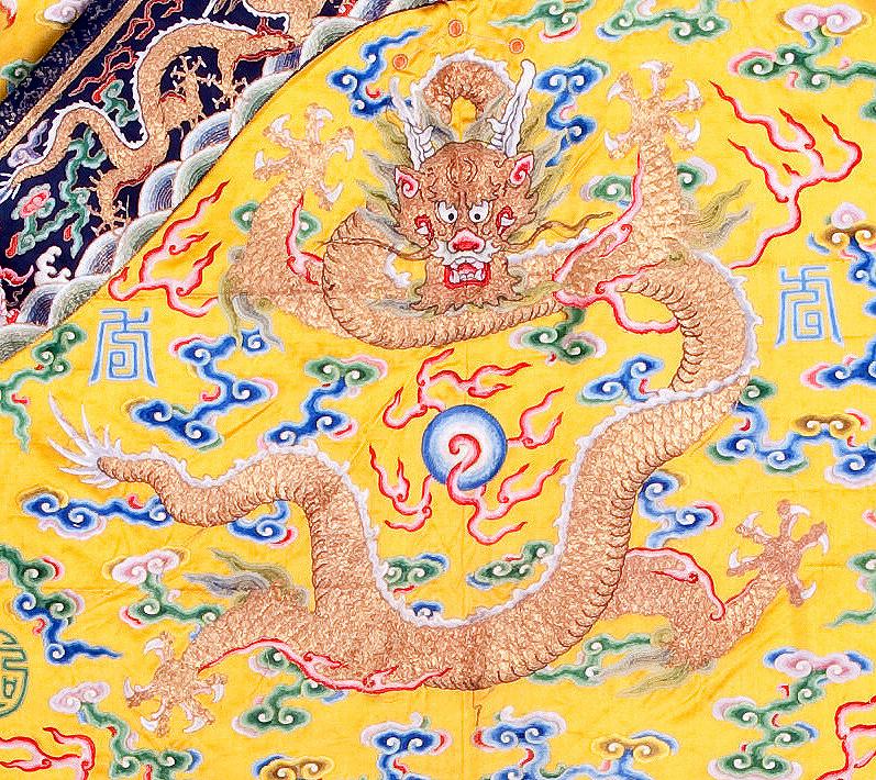 每周一品之九——明黄缎绣五彩云蝠金龙十二章吉服袍