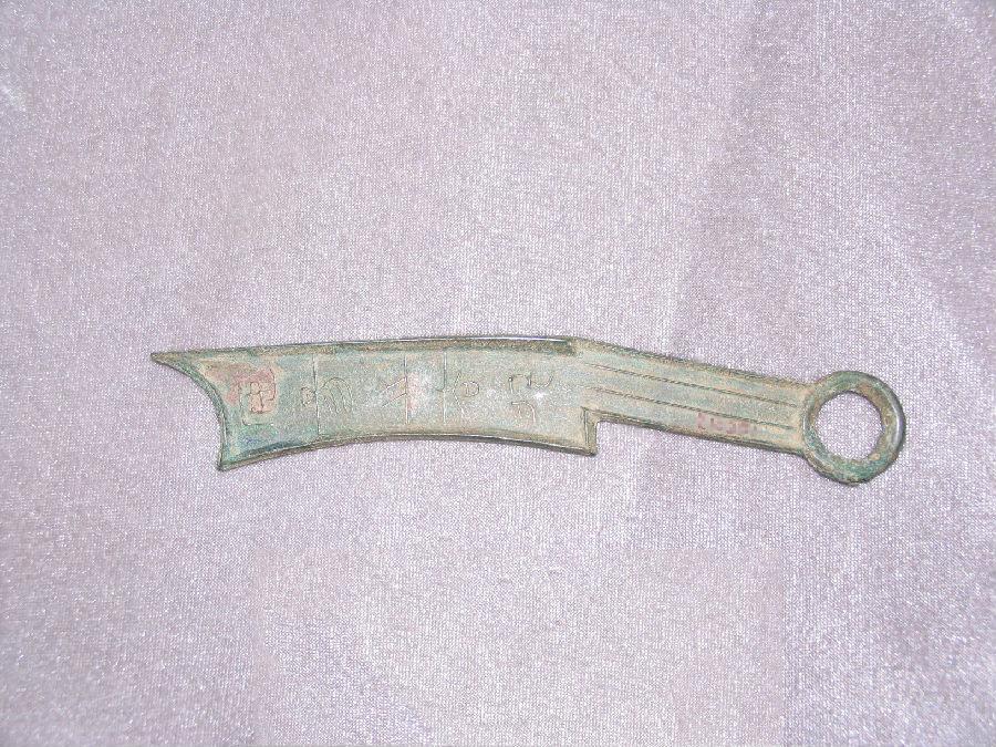 刀币也称“刀化(货)”,其形制来源于工具刀—“削”,演变而来。生产和流通于渔猎地区,春秋时的齐、燕、赵等国。以“齐刀”、“燕刀”、“赵刀”的流通量最多。齐刀称“齐法化刀”,即:墨刀,安阳刀等。其“法化”之意:“标准化意思。即重量、大小、形制合乎一定标准。”也是国家法令在货币上的表现。铸造技术也非常标准,其《考工记·筑氏》中记:“筑氏为削,长尺,博寸,六面成规”。