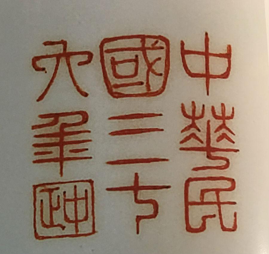国礼瓷问世后,陶校名声大振,根据汪璠在《庐山行》一文中回忆,“这批礼品瓷出了名,有些政府部长、厅长都纷纷订货,价格便宜很多,订货很多。”本文描述该件器物应是这一类制品,而非用作国礼之用。尽管如此,除底款不同外,国礼瓷底款为红彩篆书“中华民国三十六年制中正”款,器型、尺寸、装饰等各方面均无二致。这一类斛桶尊目前还存于台北中正纪念堂、江西省博物馆、景德镇陶瓷馆等为数不多的收藏机构,存世稀少,弥足珍贵。