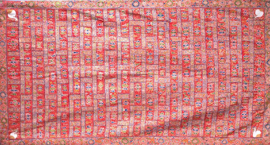 明代红色织金缎地缉线绣缠枝花四合如意云纹袈裟(艺博馆藏品)