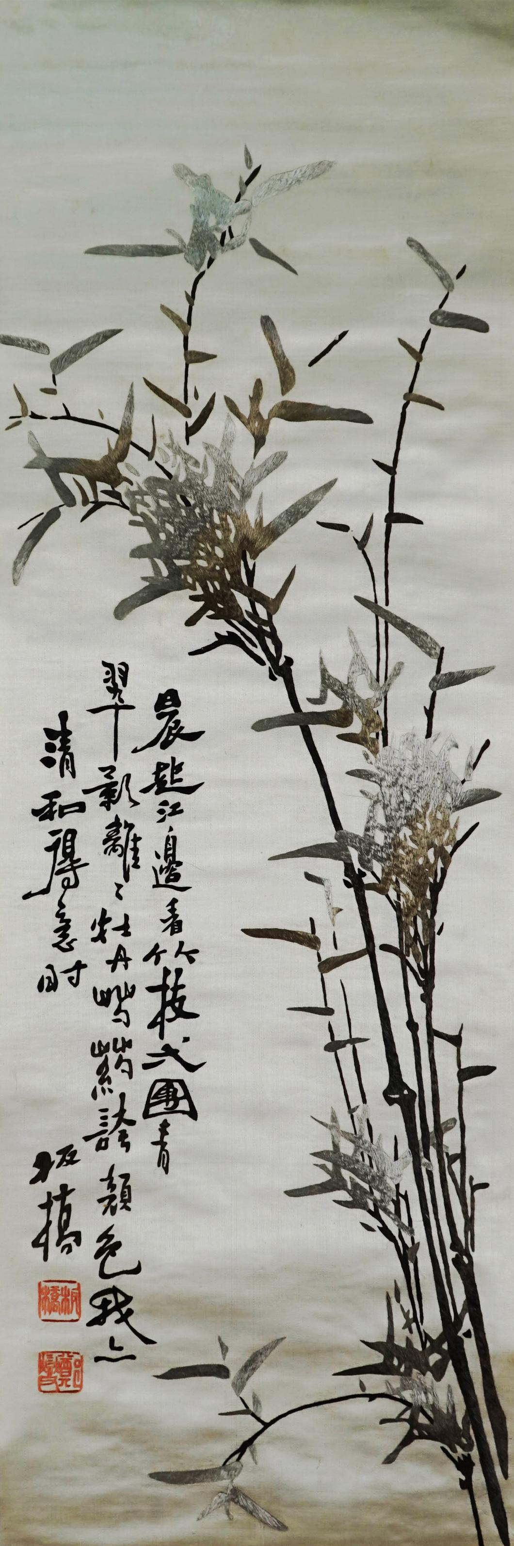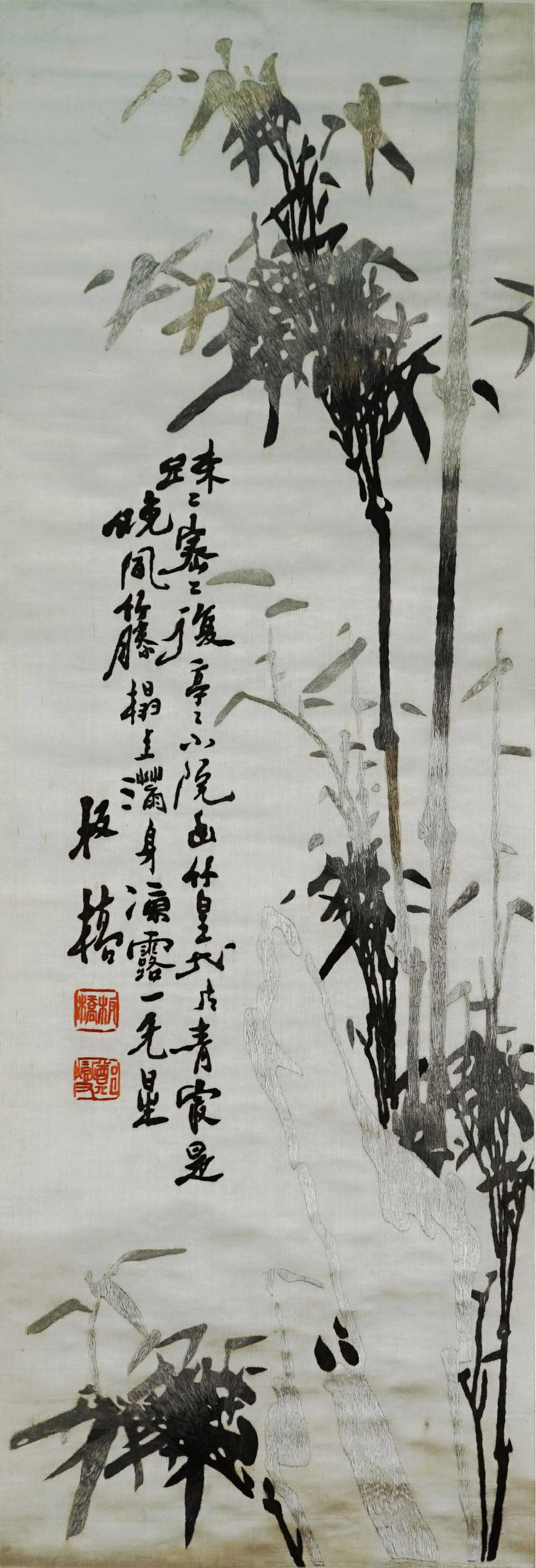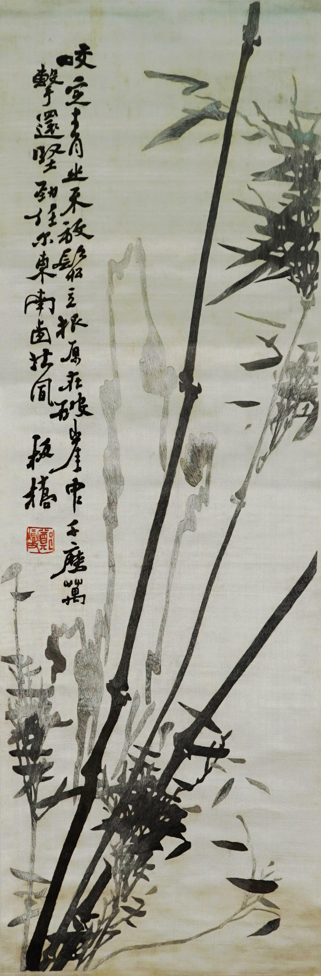 每周一品之八十五——本色缎绣郑板桥竹石图条屏