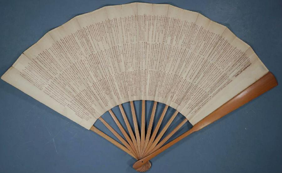 背面为《全国重要城市旅行一览表》,以起程地名笔画多寡为序,标注了上海、天津、北京、汉口、广州等51个城市之间的182条城市交通线路,注明所乘交通工具及时间,“便利经商旅行之用”。此扇将传统折扇与地图、交通线路合而为一,图案文字清晰,体现了近代印刷技术的发展。