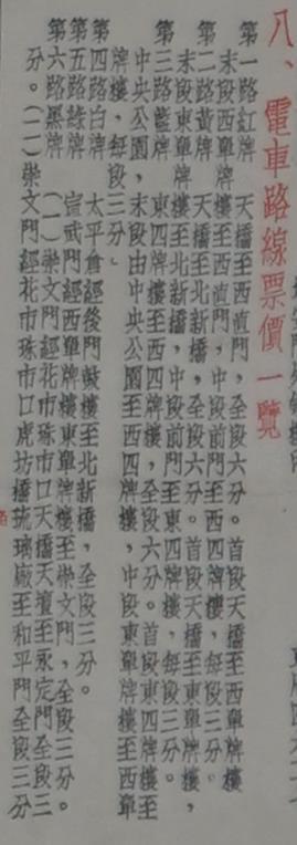 如图2所示,当时的电车共有六条线路,其中“第六路”分为(一)(二)两段。各线路票价根据路程长短,有全段票价和分段票价两种。