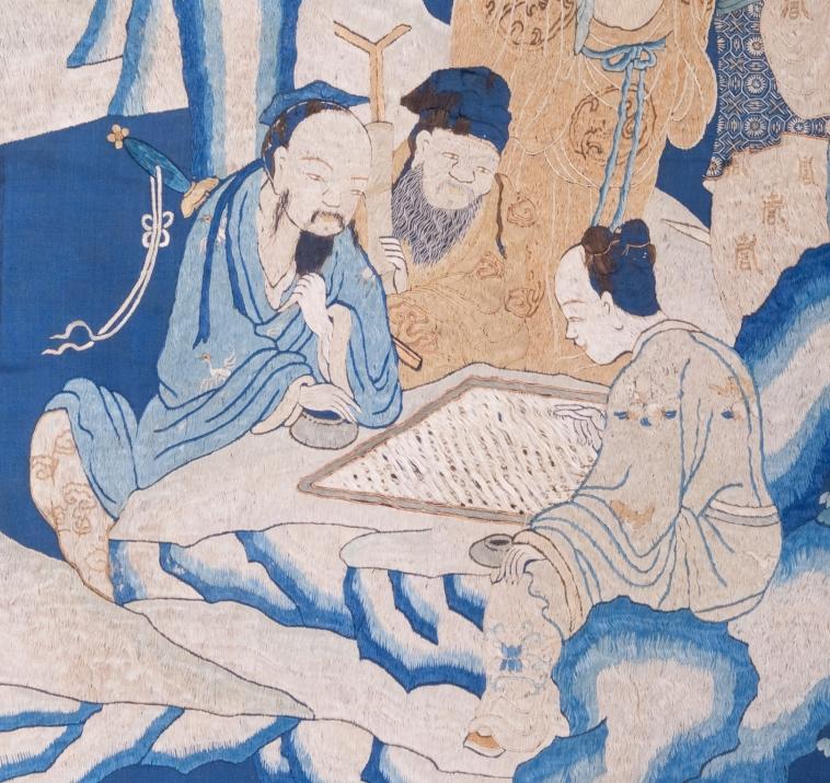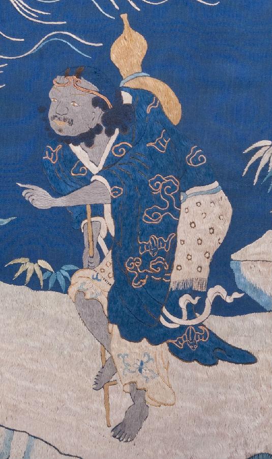 每周一品之一二二: 清蓝绸地苏绣群仙祝寿绣画