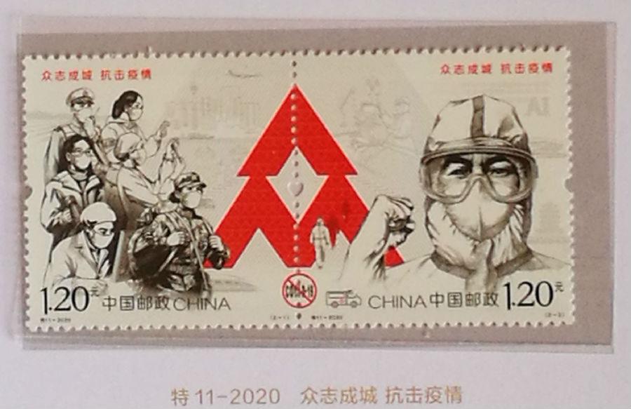 2020年我国经历了自新中国成立以来传播速度最快、感染范围最广、防控难度最大的一次重大突发公共卫生事件。面对突如其来的新冠肺炎疫情,全国人民万众一心,同舟共济、科学防治、抗击疫情。同年5月11日发行了《众志成城 抗击疫情》的邮票,一套2枚,分别是“众志成城”和“抗击疫情”。2003年爆发了“非典”疫情,当时也发行了《万众一心 抗击“非典”》邮票。