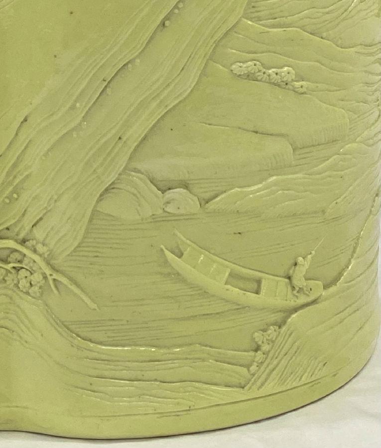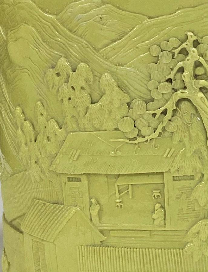 每周一品之一四九:《清黄釉雕瓷山水人物纹笔筒》