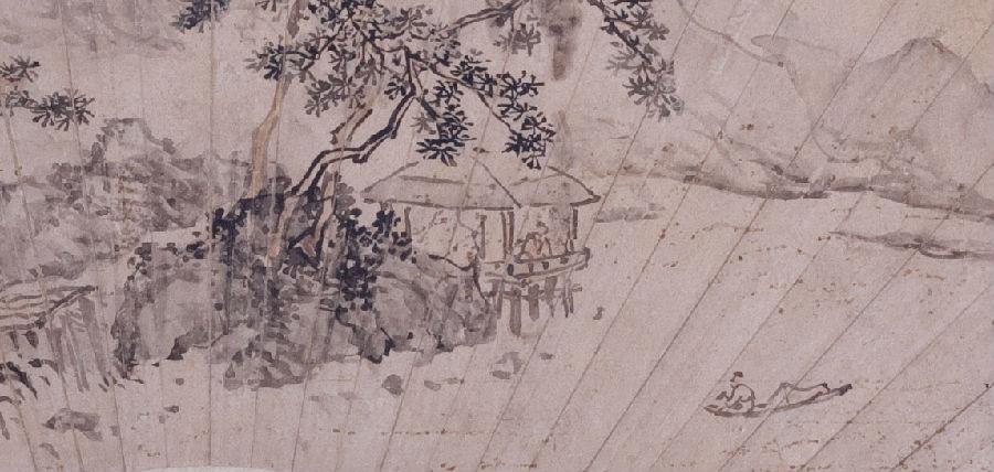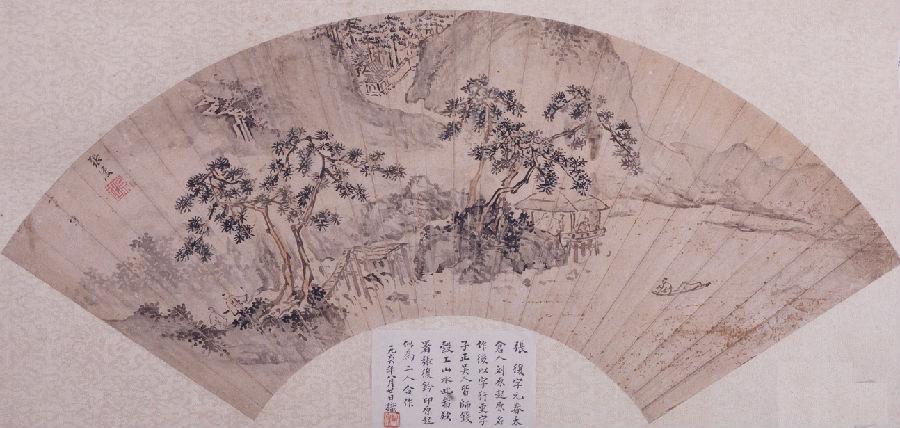 《张复山水扇页》明代 张复作 纸本设色,横59.7cm,纵32.8cm