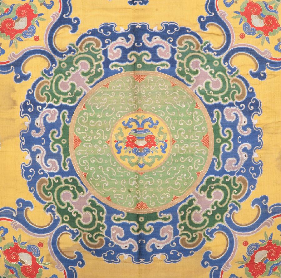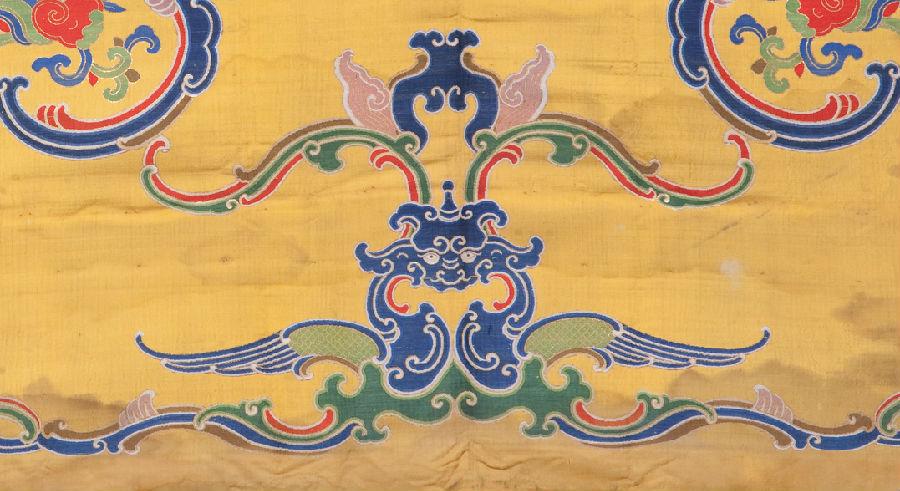 每周一品之一五八:清乾隆明黄地夔龙凤兽面灵芝纹重锦织成垫料