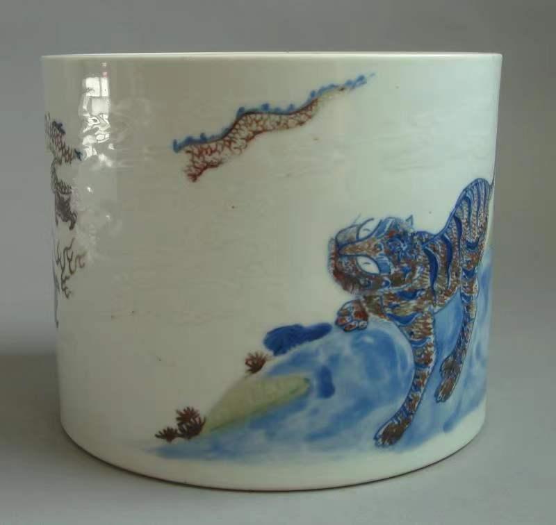 每周一品(181期):迎虎年|清康熙釉里三色龙虎纹笔筒
