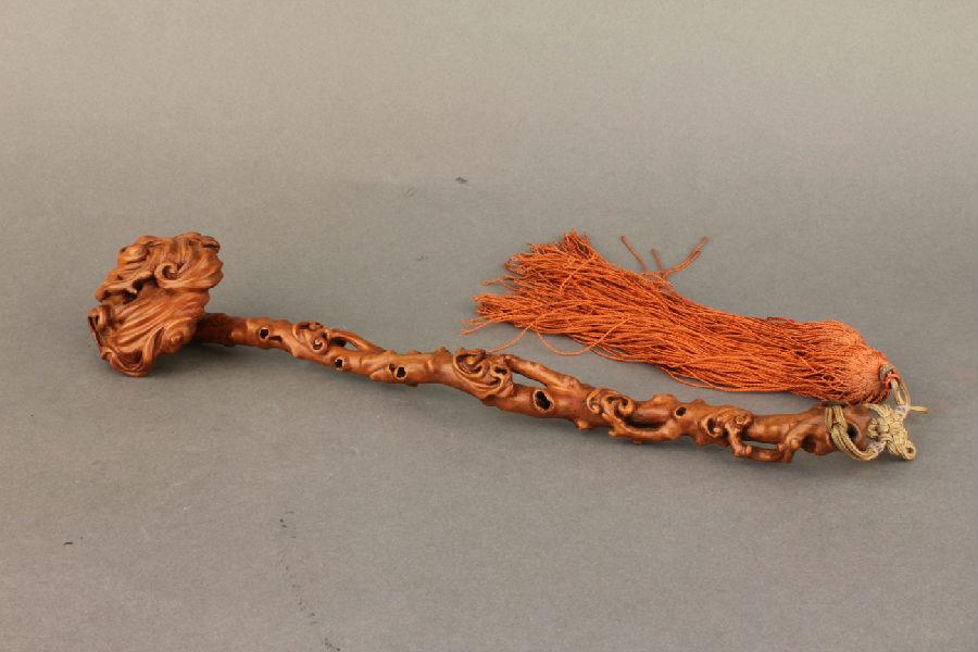 如意在我国历史上出现的最初的形态是——痒痒挠,也叫“不求人”,清代《事物异名录》云:“如意者,古之爪杖也”。后来这种痒痒挠与大臣使用的“笏”结合起来发展形成现在的样子:如意头多为祥云、灵芝状,取其吉祥的寓意。在如意头、柄上还通过雕刻、镶嵌等工艺装饰吉祥图案,比如桃、灵芝、仙鹤、蝙蝠等。
