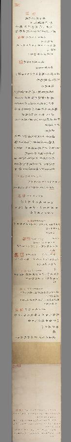 这次避暑途中,康熙帝曾对随行诸臣言到:朕自幼好临池,每日写千余字,从无间断。凡古名人之墨迹石刻,无不细心临摹。积今三十余年实亦性之所好。即朕清字,亦素敏速,从无错误。凡批答督抚摺子及朱笔上谕皆朕亲书,并不起稿。馆藏这件御笔五言唐诗卷充分说明,康熙皇帝并非吹牛,其书法功力之强和书写效率之高在历代帝王中确属佼佼者。难怪在卷尾跋文中: