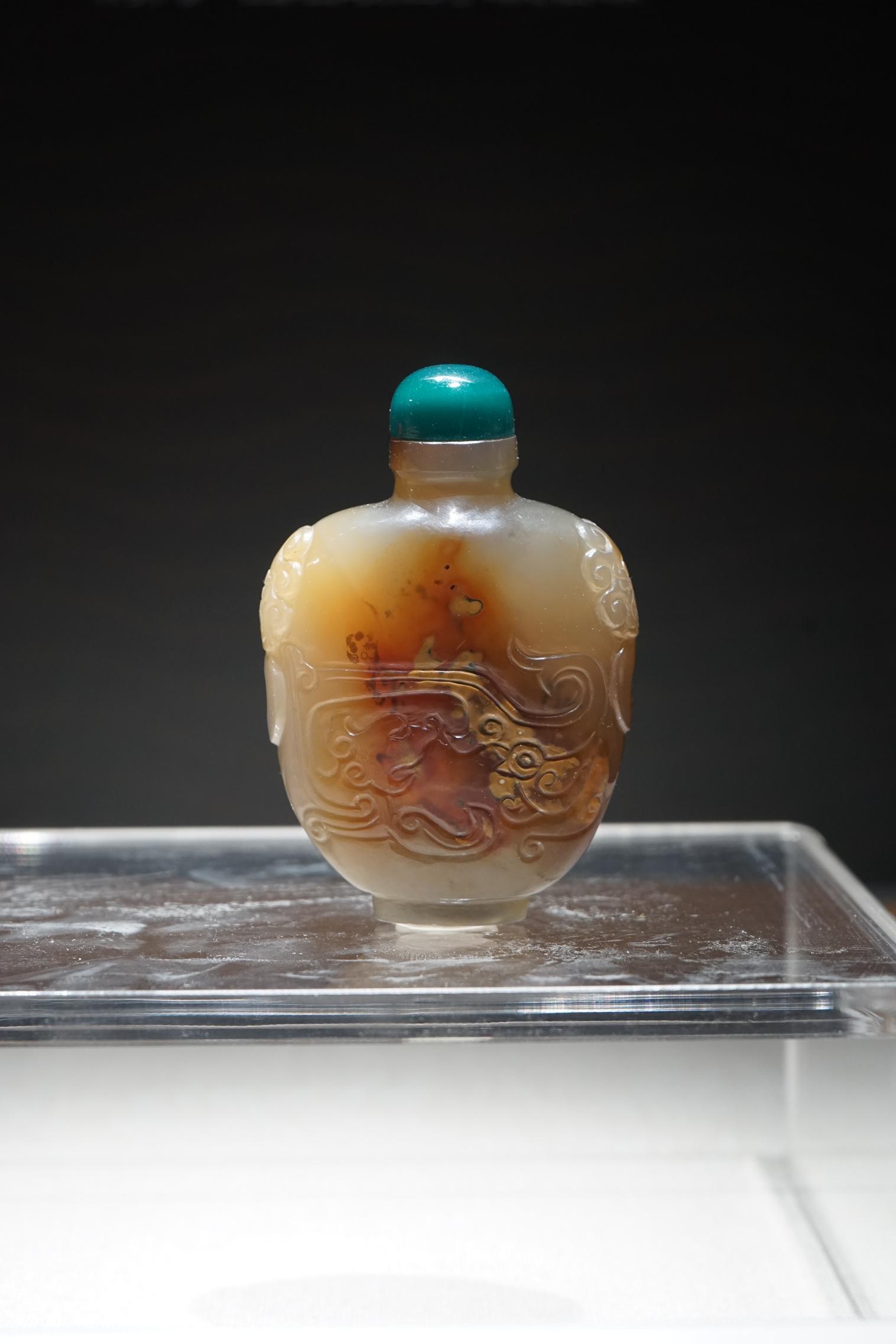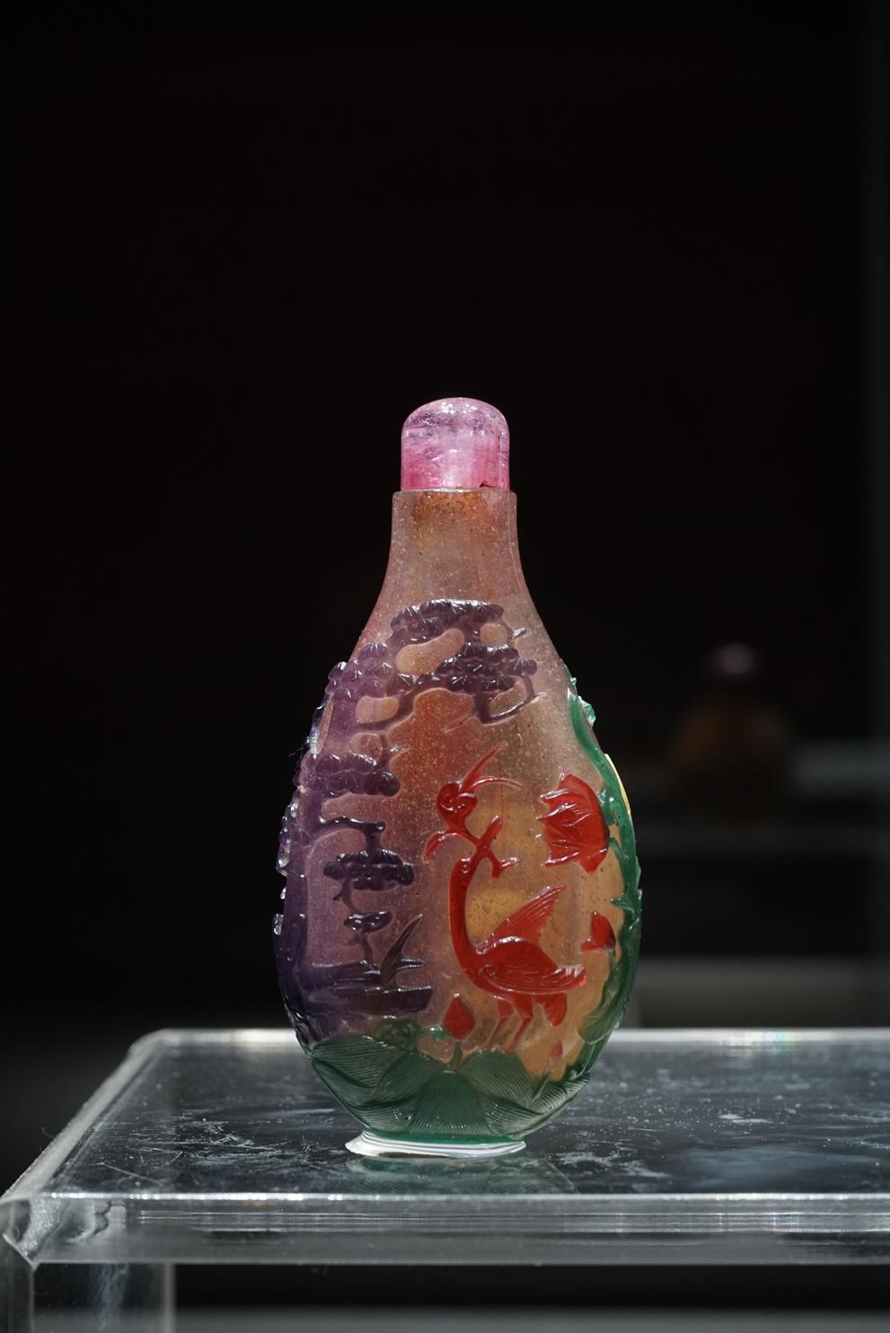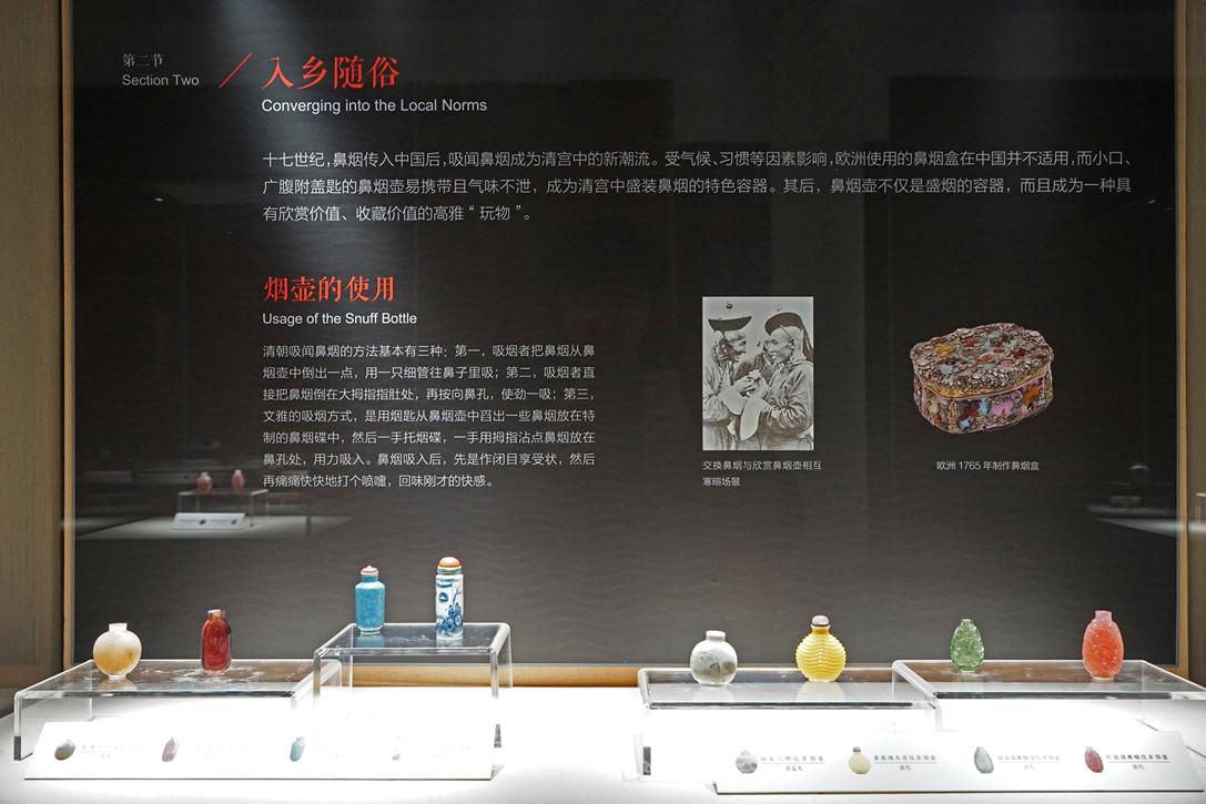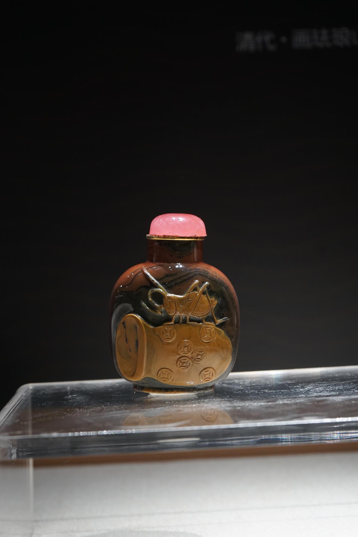 本次展览展出馆内珍藏的珍贵文物76件套,分三个部分“星芒的闪耀——源自西方的雅物”、“无尽的风姿——流行清宫的潮物”、“最后的辉煌——鼻烟壶的‘绝唱’”。 鼻烟壶可谓是我国博大精深的工艺美术的结晶,它不仅集绘画、书法、诗词于一身,还包含着制瓷、雕刻、镶嵌、玻璃工艺等更为广泛的工艺技术,集中地展示了我国古代匠师们高超的技艺和卓越的才能。