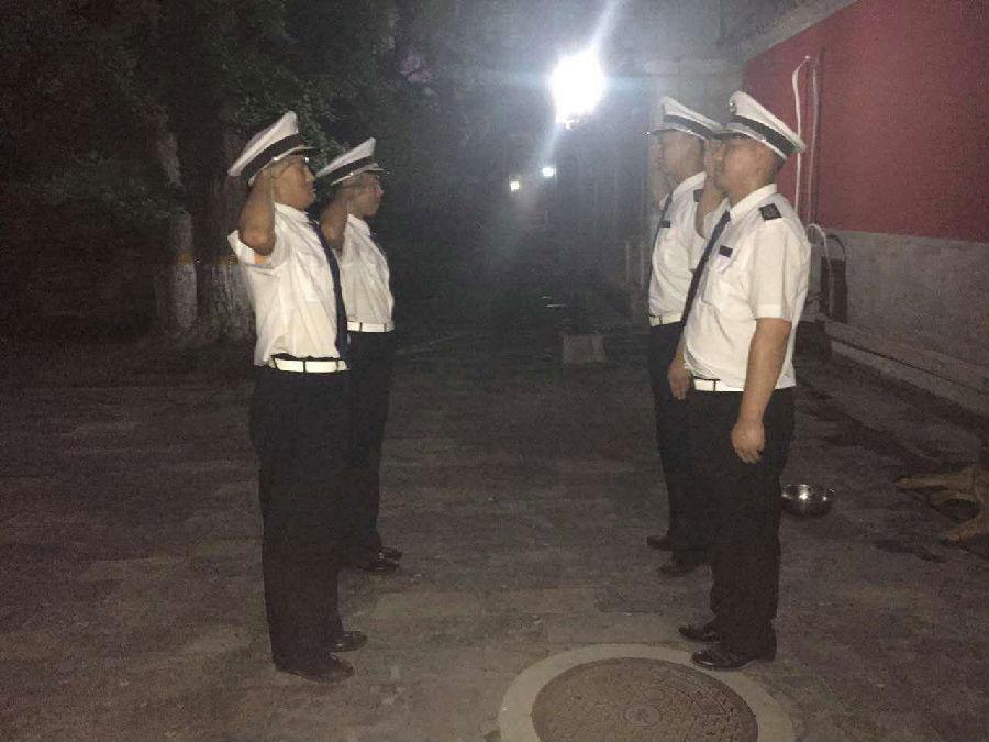 每天早上7:00起床后,开始一天的早操,8:00,白班执勤人员集合起来,先到博物馆外围进行检查,8:30到馆内接班,当天执勤人员汇总通报执勤情况及代办事项。一天的工作开始了,每一位安保人员都有自己的巡查范围,这一个岗就是12个小时,一直到晚上8:30分和夜班队员交接,夜班也是12个小时。队员执勤时可是时刻提高警惕,遇有突发情况,及时报告,执勤时是不能闲聊,玩手机,看书报,睡觉的。