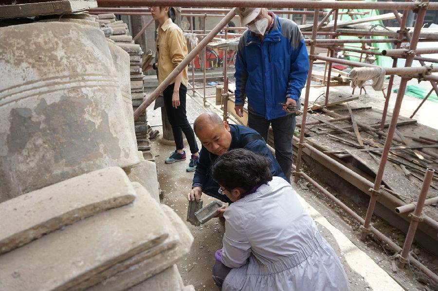 随着万寿寺修缮工程的展开,为更好地保存古代技艺,北京艺术博物馆邀请北京古代建筑博物馆的保管专家从万寿寺修缮替换下来的瓦当、兽脊、椽、望板等旧件中,挑选17件品相较好的构件作为北京古代建筑博物馆的标本,填补了古建馆馆藏标本的种类、数量。