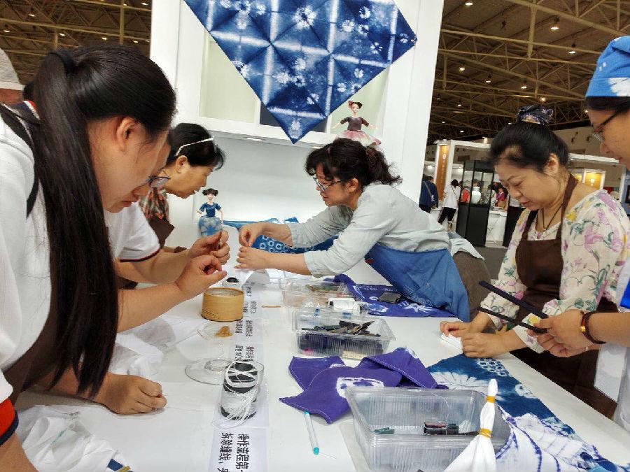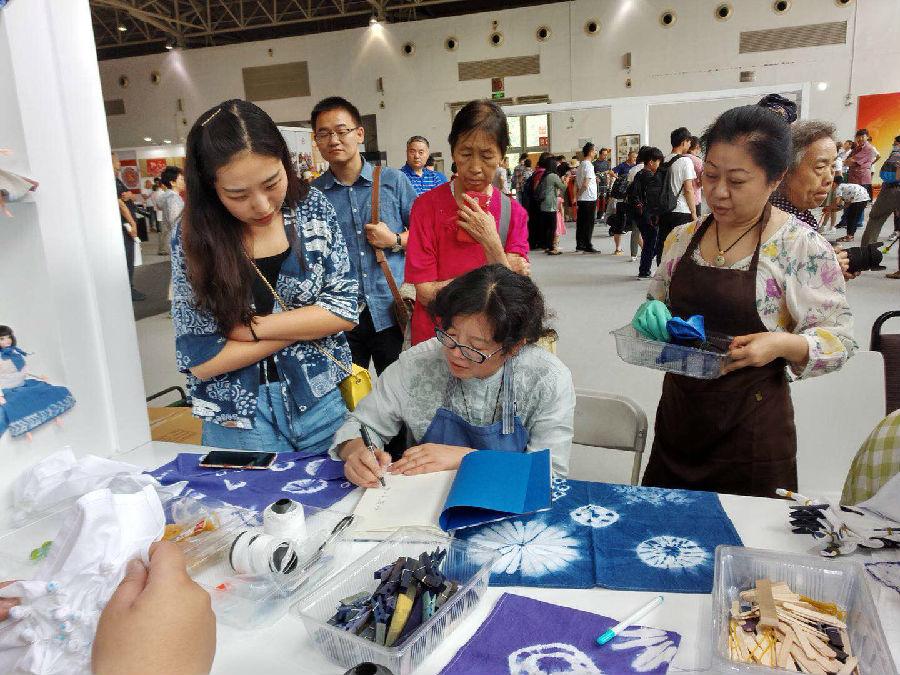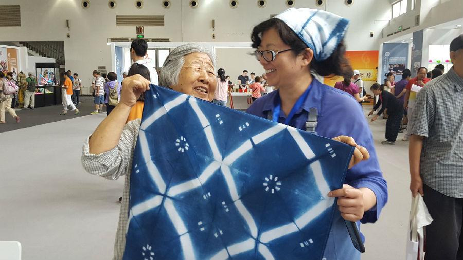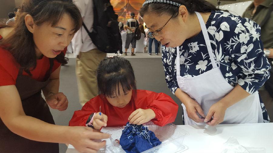 手作绞缬,传授扎染布艺,推广染缬艺术。此次在农展馆举办的扎染活动,受到广大市民的欢迎,有八十多岁的老奶奶、有女红爱好者,还有许多少年儿童,此次活动尤其受到小朋友的青睐,小朋友亲自动手绘底图,拿起缝衣针缝,小木棒绑、扎,拿起筷子煮、染,带上手套漂洗,一套连续动作下来,看着把一块白布染成自己想象的样子,但又出乎意外的美图,俨然已经是个小小扎染专家,手工的乐趣洋溢在稚嫩的笑脸上。