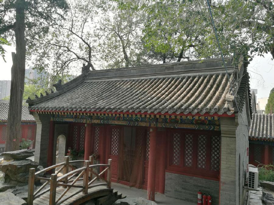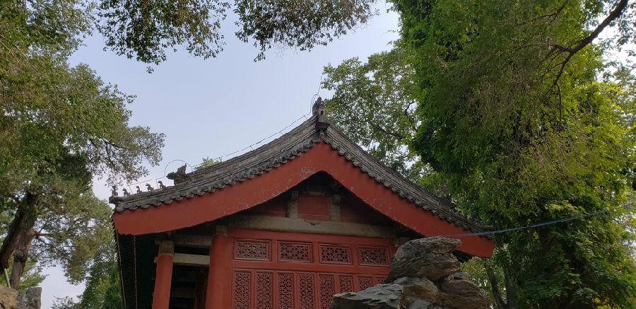 万寿寺内假山之上的左右配殿就是使用的硬山顶。它的正殿是悬山顶式建筑。