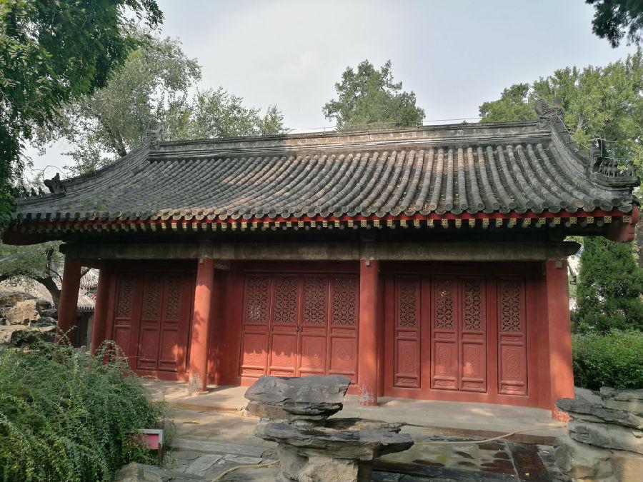 万寿寺内的乾隆御碑亭就是重檐攒尖顶的建筑物。重檐指的是房顶上有两层房檐。