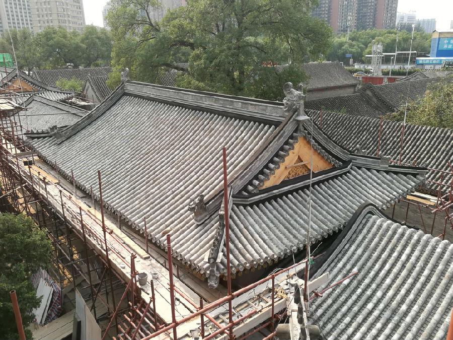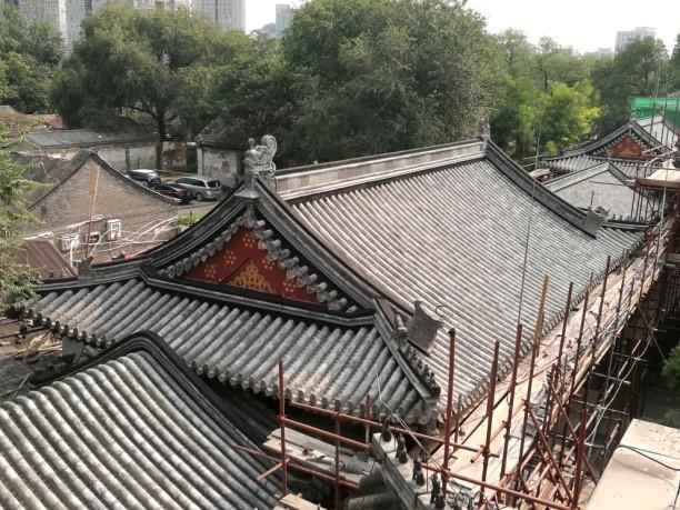 在万寿寺修缮过程中,屋顶修缮进度还是很快的。下面看看万寿寺这座皇家重寺的屋顶魅力: