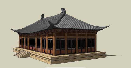 庑殿顶是屋顶级别最高的屋顶,由一条正脊和四条垂脊形成四面坡形式的屋顶。因为屋顶一共有五条脊,因此也叫“五脊殿”。