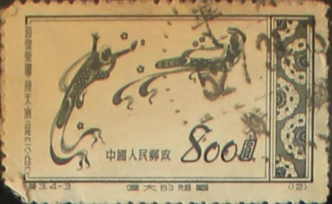 敦煌壁画是我国的文化瑰宝,在老特票里自然也少不了敦煌题材。《特3—伟大的祖国(第一组)敦煌壁画》于1952年7月1日发行。分别为1、狩猎·魏;2、供养人·隋;3、飞天·唐;4、乘虎天人·唐。其中1、2两张邮票反映了当时人们的现实生活,图案生活气息很浓。3、4则反映当时人们的精神世界,画面显得空灵、洒脱。