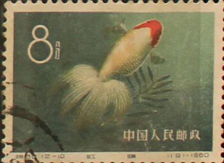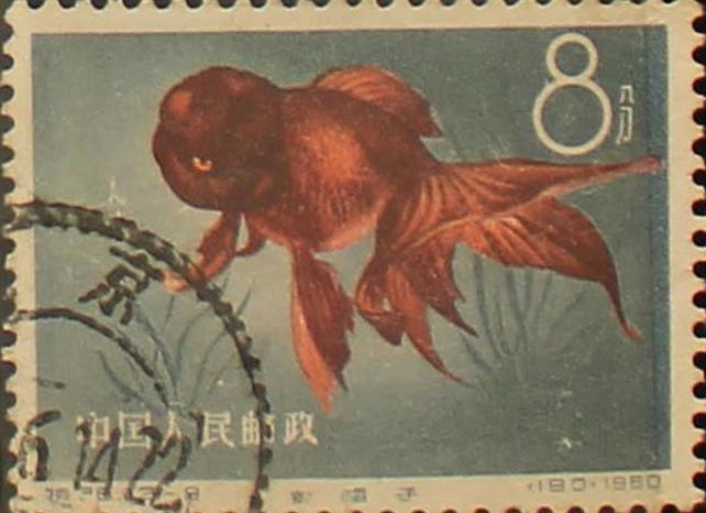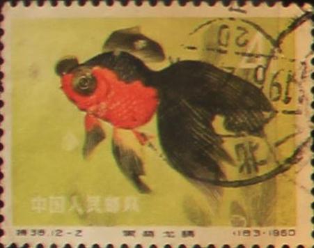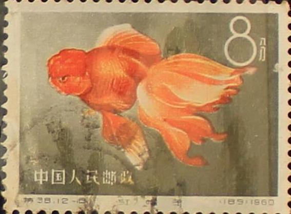 中国金鱼是世界观赏鱼史上最早的品种,陪伴人们有十几个世纪了。为了弘扬中国的传统鱼文化,1960年6月1日发行《特38—金鱼》特种邮票,全套12枚。依次为:1、翻腮绒球;2、黑背龙睛;3、水泡眼;4、红虎头;5、珍珠鱼;6、蓝龙睛;7、望天鱼;8、红帽子;9、紫帽子;10、红头;11、花龙睛;12、红龙睛。