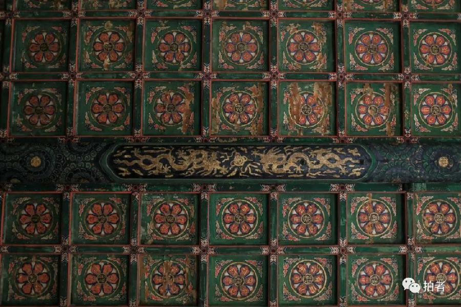 △ 万寿寺中路的大雄宝殿建筑顶部仍可见保存较好的清代彩绘。