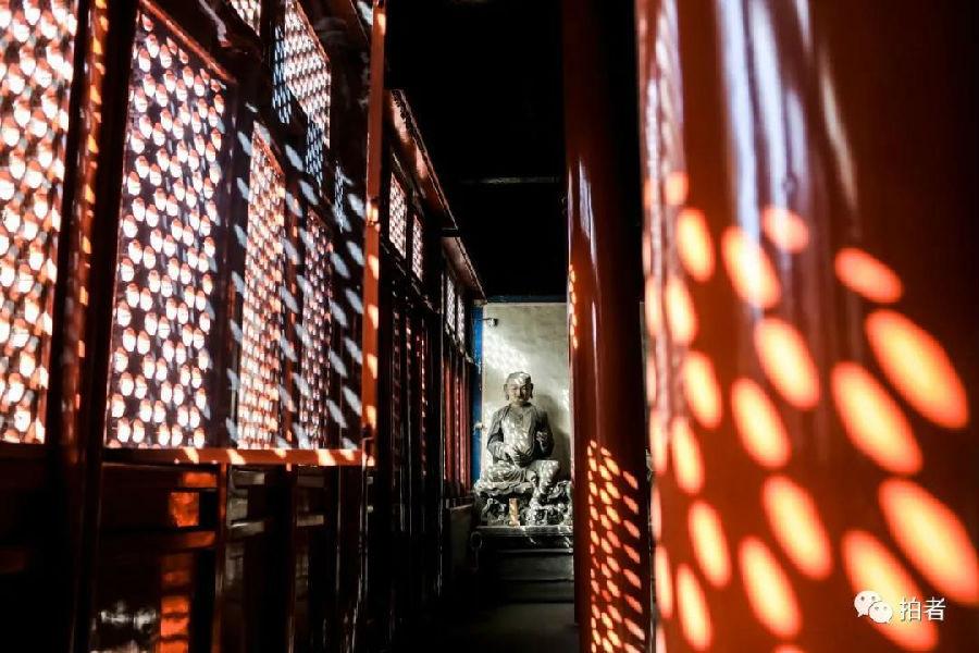 △ 大雄宝殿内,沐浴在阳光中的罗汉造像。