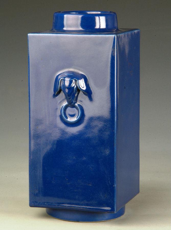 【图11】霁蓝釉象耳方瓶 清乾隆(1736~1795)