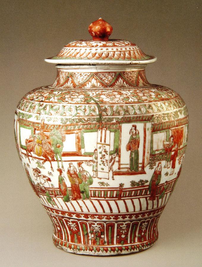 【图3】红绿彩十八学士图盖罐(艺10139) 明嘉靖(1522~1566)