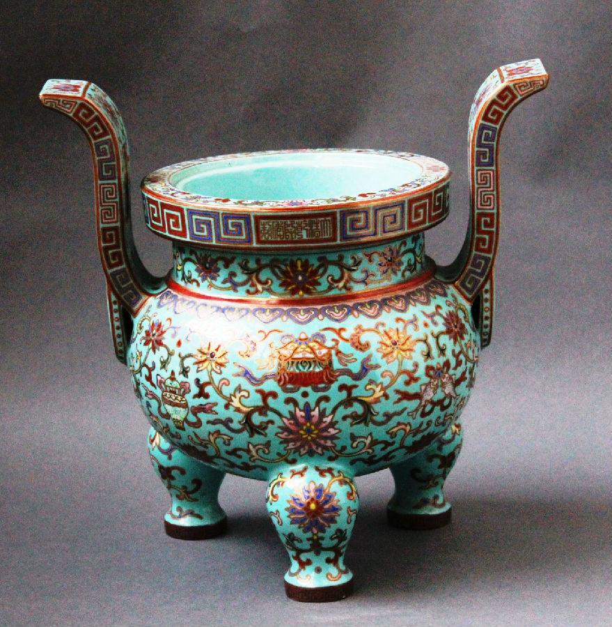 【图2】松石绿地粉彩八宝纹鼎式炉 清乾隆(1736~1795)