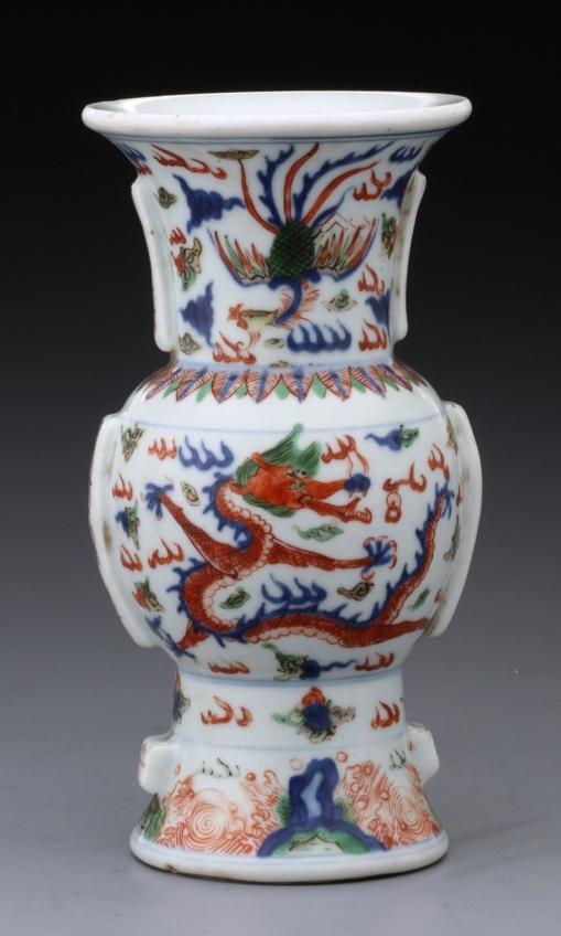 【图16】民国仿明代五彩龙凤纹觚