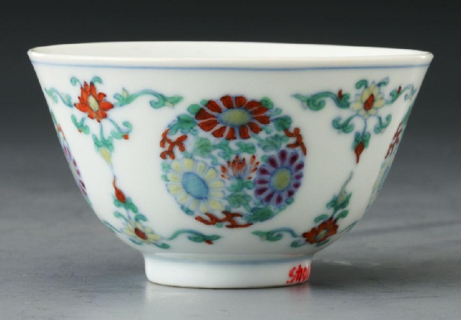 【图19】斗彩团菊纹杯 清雍正(1723~1735) 【图20】民国仿雍正斗彩团菊纹杯