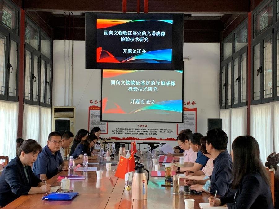 2021年5月21日上午,北京艺术博物馆举办了《面向文物物证鉴定的成像光谱检验技术研究》开题论证会。公安部刑事犯罪侦查局文物犯罪案件侦查处胡昀昀处长、课题组成员、合作单位、外聘专家及馆内部分人员,共17人参加了开题论证会。