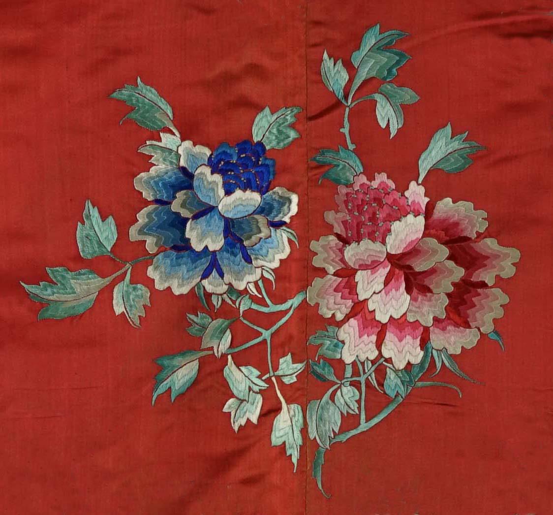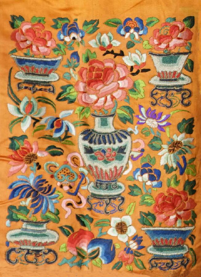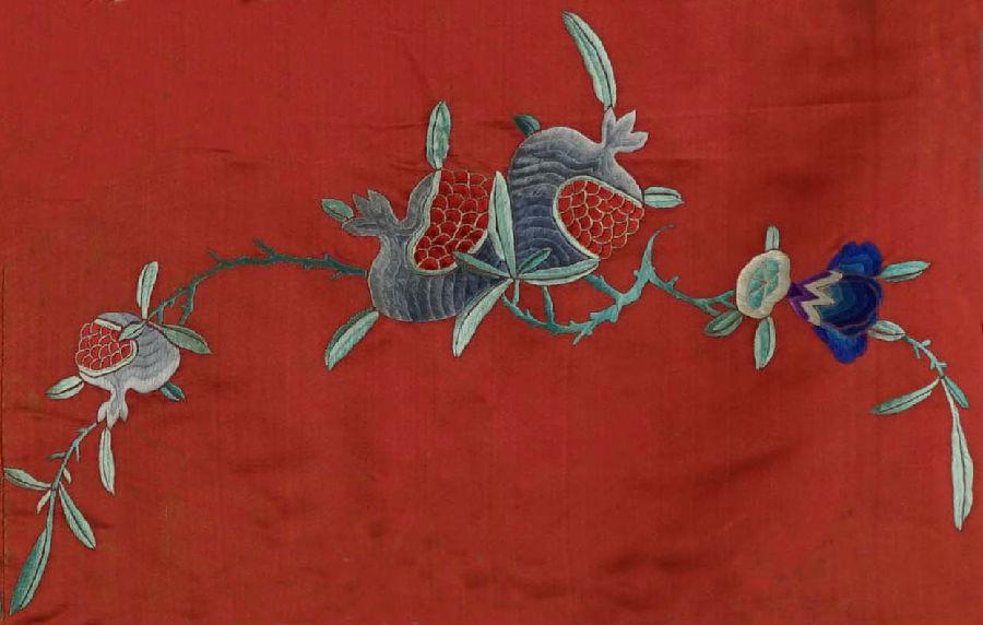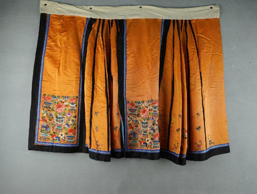 杏黄缎绣“四季平安”纹栏杆裙(部分) 清