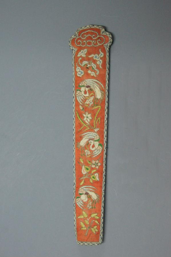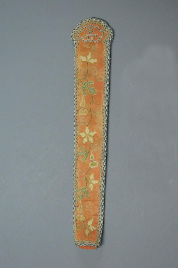 桔红缎地缉线绣“福禄万代”纹扇套 清