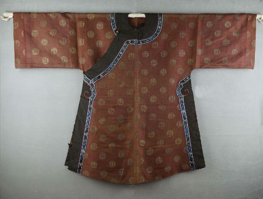 中国的吉祥文化由来已久,以具有特殊含义的图案来祈愿吉祥的做法可上溯至商周时期。至清代,随着商品经济的发展和市民阶层的活跃,人们的吉祥观念愈发深入,体现在服饰上,使得吉祥图案成为这一时期服饰纹样的主流,甚至达到“图必有意,意必吉祥”的程度。其纹饰题材广泛,花果植物、鸟兽鱼虫、神仙人物、山水亭台、珠玉器物、文字符号等无所不包。这些内容通过象征、谐音或文字的方式被整合成纹样装饰在服饰上,使服饰成为寄寓吉祥意象的物质载体,体现出更深刻的文化内涵。