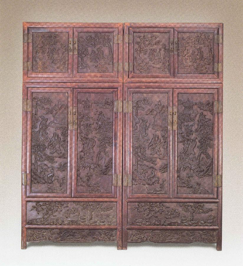 橱柜主要是收藏衣物、置放食品等物的家具。橱的体型与桌子相仿,但以前所用的闷仓,多以门来代替。清式家具中的柜子,一般体型高大,可以存放大件的衣物和物品。对开门,柜内装隔板,有的还会装有抽屉。