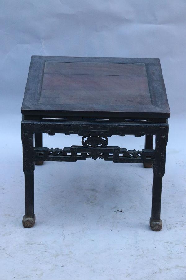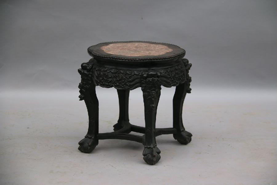 酸枝木嵌大理石面雕梅花形兽足凳 清