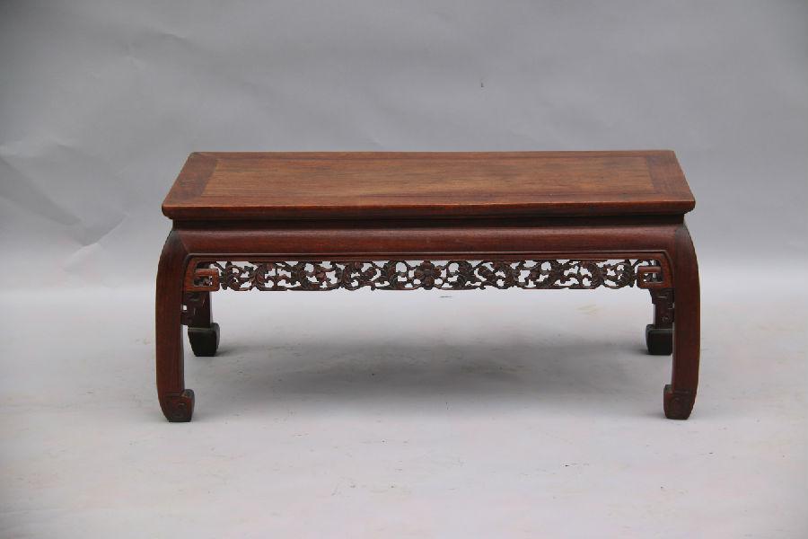 清式家具,以清代雍正、乾隆时期生产的硬木家具最为典型,用料以紫檀、红木为主。清式家具的总体特征是造型厚重,装饰繁缛,精雕细琢,给人以豪华、大气、艳丽的感觉。嘉庆、道光以后,紫檀家具变得少见,多以红木、草花梨木代之,雕刻工艺和制作水平也都不及前朝。