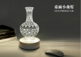 夜灯以亚克力材料雕刻出纹饰图案,使用LED照明,灯光柔和,温馨静美。