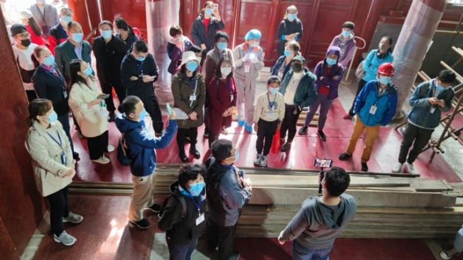 2021年10月15日下午,由北京艺术博物馆举办的“万寿寺修缮工程工地开放日”再次迎来30位观众观摩体验活动。此次开放日是2021北京(国际)运河文化节系列活动之一,是大运河北京段多样态文化的呈现。