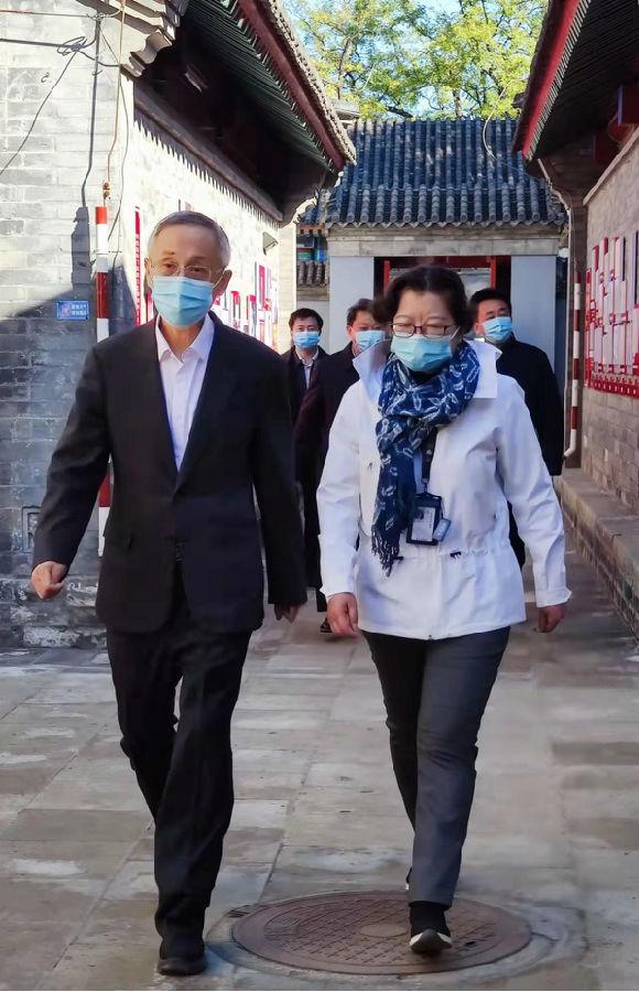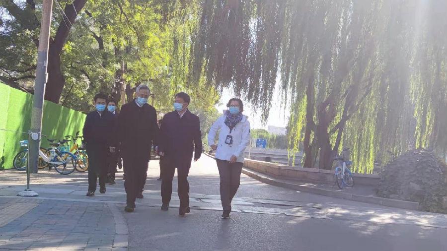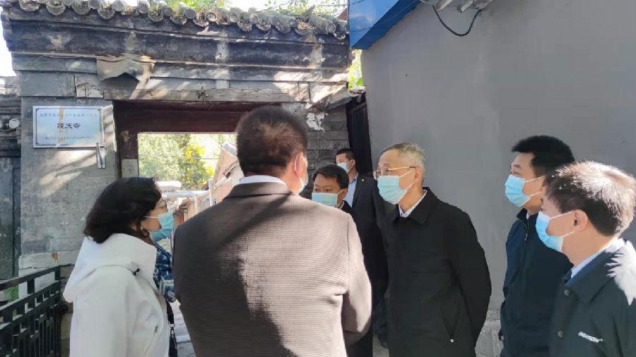 图2,陈名杰局长、王丹馆长等陪同杨斌副市长查看万寿寺周边环境安全
