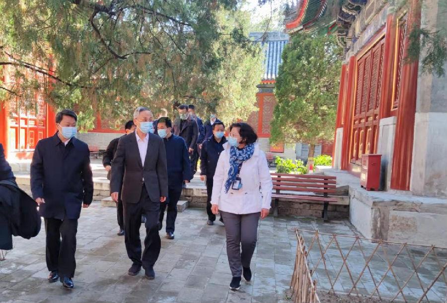 10月22号上午,北京市副市长杨斌一行到万寿寺调研。调研的主要内容有:检查万寿寺古建修缮现场安全,调研万寿寺文物库房、展厅的安防情况,现场听取陈名杰局长对万寿寺开放的相关汇报,研究开放后的道路交通、街道环境、服务质量等社会问题预案。