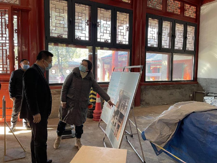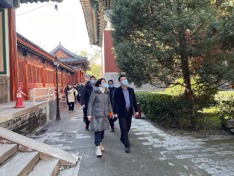 11月10日上午,海淀区政府副区长岳立带队,一行赴万寿寺调研指导工作。紫竹院街道党工委书记常增玉、北京艺术博物馆馆长王丹及相关领导陪同调研。王丹馆长向岳副区长详细介绍了万寿寺的历史以及古建修缮情况、博物馆藏品等相关信息,并陪同参观了大雄宝殿佛像以及东路古建修缮现场。岳副区长认真聆听了王丹馆长的汇报,对万寿寺工作给予肯定。