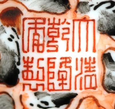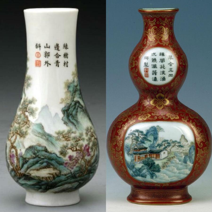 民国时期,粉彩瓷除了有新的发展,还出现了一类仿清代官窑烧制的粉彩瓷器,以仿乾隆官窑粉彩为多,主要分为三类:一是造型、纹饰、款识均模仿乾隆官窑瓷器原作者。二是只仿写乾隆官窑瓷器的款识,造型和纹饰则具有民国时期的特点。三是在原胎上后加彩。但无论造型、款识、彩绘技法等方面都与真品有较大差距。