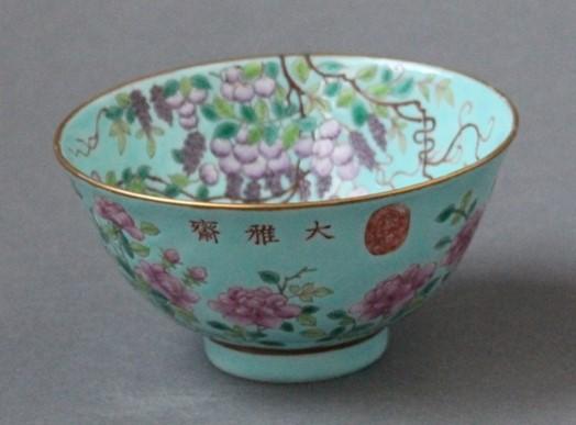 清光绪松石绿地粉彩紫藤花卉“大雅斋”碗