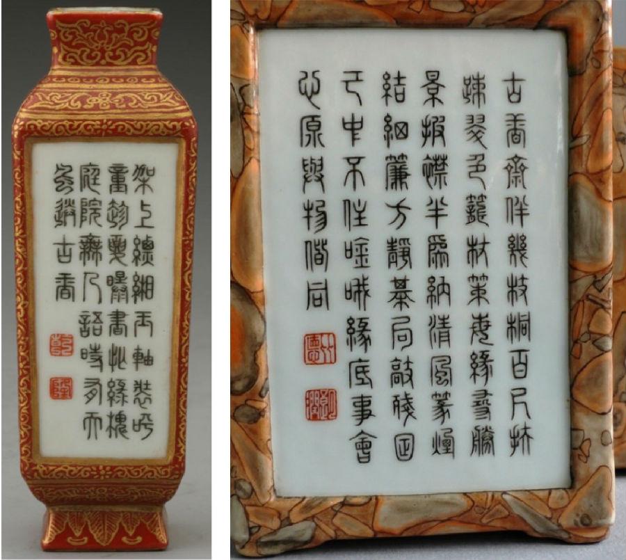 一组北京艺术博物馆藏乾隆粉彩瓷上的篆书款识
