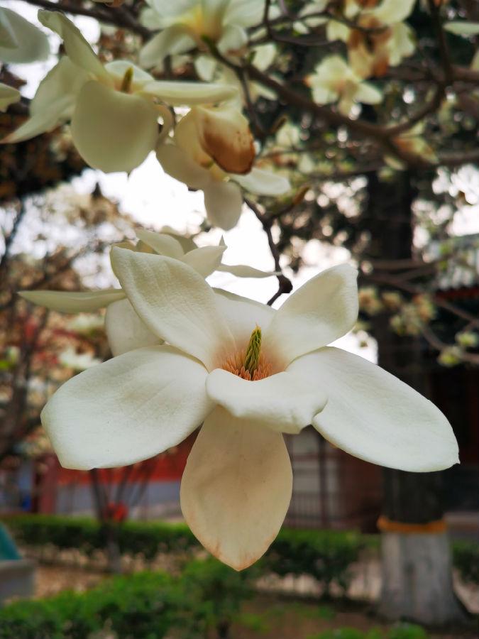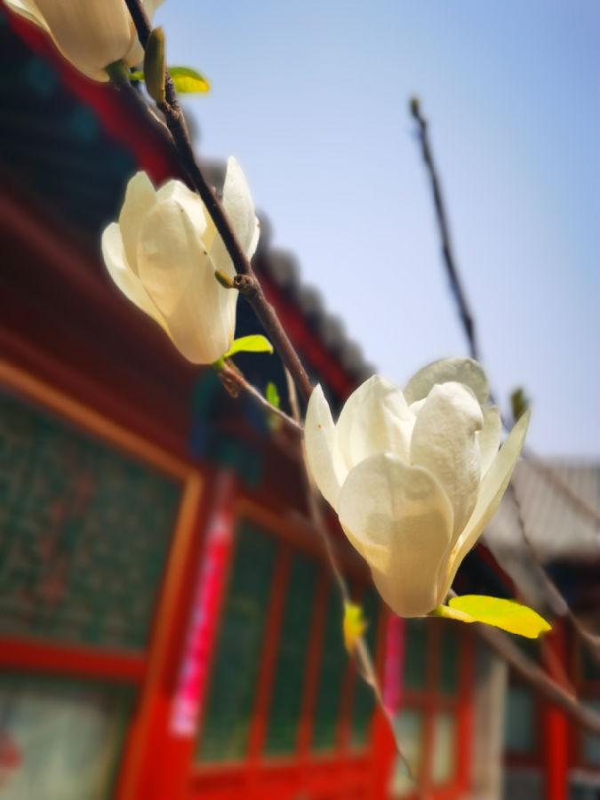 北京艺术博物馆内有6棵高大挺拔的玉兰树,每年春季绽放洁白的花朵。