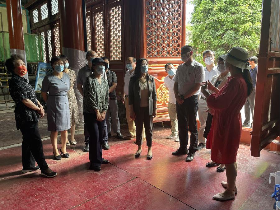 6月23日下午,北京市海淀区委常委、统战部部长牟晓春、常务副部长刘珍等一行成员在紫竹院街道党工委书记常增玉等人员的陪同下到北京艺术博物馆开展调研工作。北京艺术博物馆副馆长张巍接待并陪同调研,社教部孙秋霞向调研人员详细讲解了万寿寺的历史沿革、古建修缮以及佛像修复等基本情况,同时也介绍了艺博的展厅规划以及展览等相关信息,各位专家领导充分了解艺博的各项工作,也对艺博的未来发展充满深切期望。